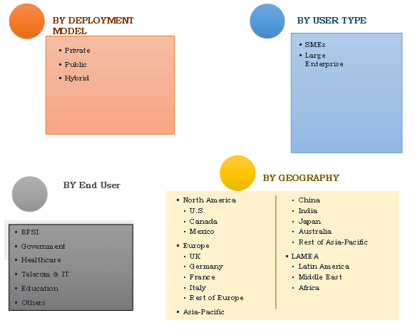 The global cloud-based VDI market is segmented on the basis of deployment model, user type, end user, and geography. The deployment model covered in the study includes private, public, and hybrid. By user type, the market is bifurcated into small & medium enterprise (SMEs) and large enterprise. Based on end user, it is categorized into BFSI, government, healthcare, telecom & IT, education, and others. Regionally, it is analyzed across North America, Europe, Asia-Pacific, and LAMEA.