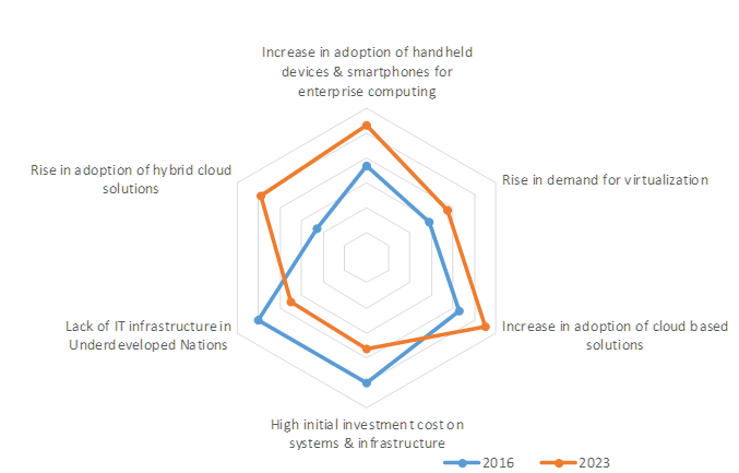 Increase in government spending on digitization, decrease in the prices of smartphones, and improved tele density are the factors driving the market growth. Presently, companies are implementing BYOD (bring your own device) policy, which minimizes the equipment purchasing & management cost and supports the changing business needs.